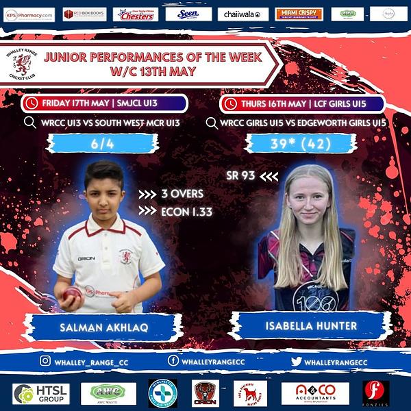Salman and Isabella are our Junior Performers of the Week! This was a tough choice for the coaches as there were many fantastic individual junior performances. Honourable mentions to Joseph Lough (u15s), Talha Tariq (6th XI) and George Haslam (u11s).